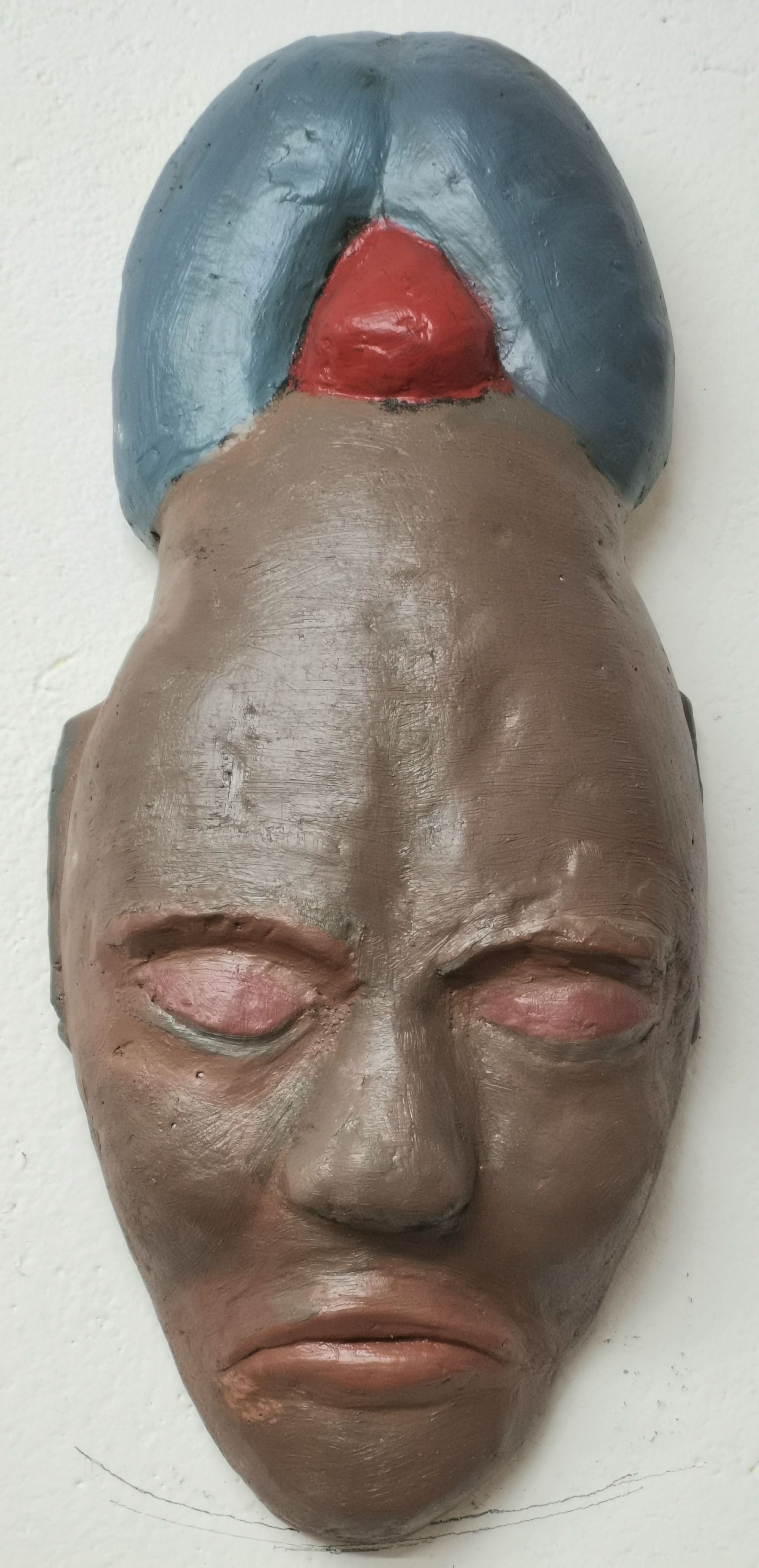 Essais de peinture sur demi tête ratée pour accrocher au mur